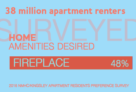 48% of Renters recently surveyed rank a Fireplace in their Top 5 amenity's they are looking for in their next home. We all know a fireplace adds tremendous value (up to $12,000 in value to a single family home), as well as a cozy conversation spot. From the grand fireplace in the common area, a beautiful linear fireplace in the lobby, or traditional fireplaces in the living room and bedrooms. We make adding a fireplace to your next project easy, offering gas-free / vent-free fireplaces that give the the appearance of a wonderful wood burning fireplace without the hassle and cost of venting, running gas lines, and the liability of the hot glass on a gas direct vent fireplace.
